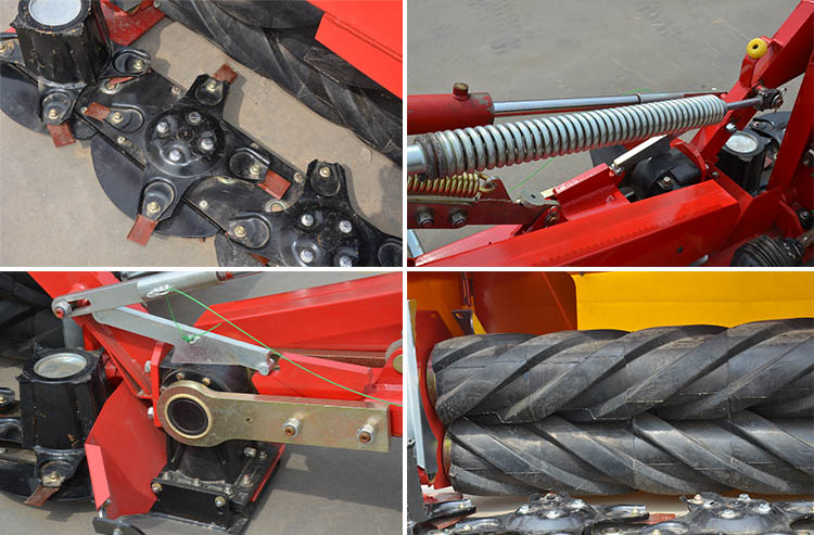 3. Ang mga farm disc mowers ay nilagyan ng isang hilig na aparato ng proteksyon, na ginagawang mas simple ang proseso ng pagpapanatili. Kailangan lamang ng operator na magsagawa ng kaunting pagsisikap upang makumpleto ang gawain sa pagpapanatili.