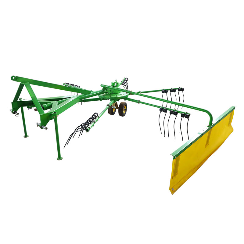 Ang rake ay isang makina ng pag -aani ng forage na nagsasama ng mga rakes ng pastulan. Matapos maani ang pastulan, upang maabot ang mga kondisyon ng baling sa lalong madaling panahon, ang pastulan ay kailangang maging sun-lit na may isang kumakalat. Ang kumakalat ay maaaring pantay na maikalat ang pastulan sa bukid, na nagpapadali sa mabilis na pagsingaw ng tubig at pinadali ang pagputol ng pastulan sa mga bales o tuyo bago ang pag -silage. Kapag ang kahalumigmigan ng pastulan ay maaaring maabot ang isang estado kung saan maaari itong matuyo, ang mga pananim ay natipon sa isang kamalig na may isang rake at sinalsal sa mga piraso bilang paghahanda sa pagtali ng mga operasyon. Kapag nagtatrabaho ang rake, gamitin ang mga ngipin ng tagsibol upang ilipat ang malumanay upang tipunin o maikalat ang araw, maiwasan ang halo -halong mga labi o bato sa ani upang mapagbuti ang kalidad ng pastulan o berdeng feed.