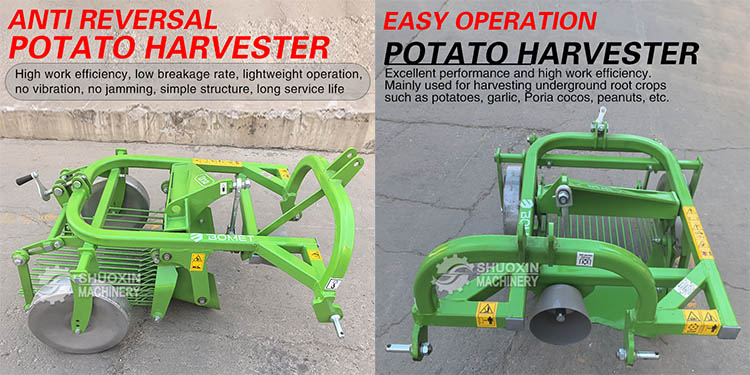 Nagtatampok ang traktor na naka-mount na mga ani ng patatas na mataas na kahusayan, minimal na pinsala sa ani, mabilis na paghihiwalay ng lupa, at isang mahabang buhay ng serbisyo.